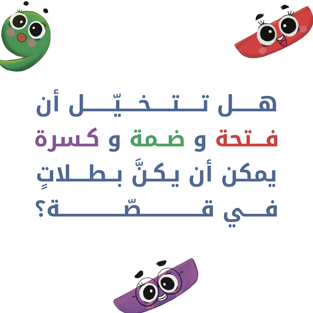 تساعد الأطفال على تعلم الفتحة، الضمة، والكسرة بأسلوب قصصي مشوّق وسهل، وبشخصيات مرحة يحبّها الأطفال